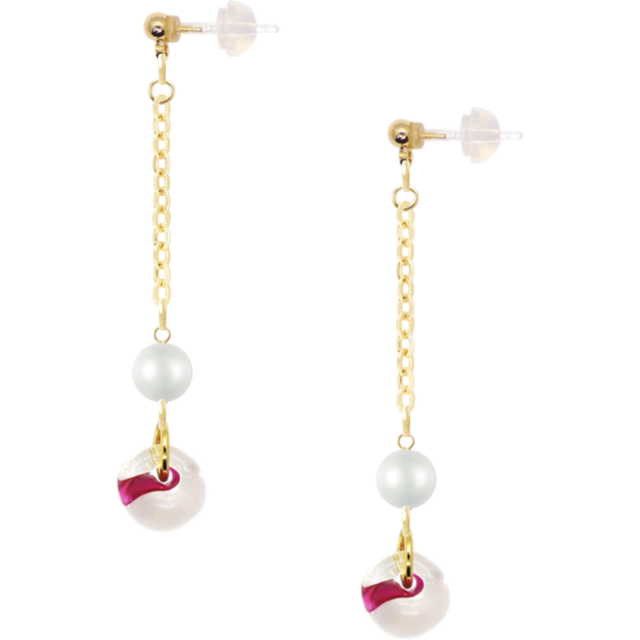 魅惑のデザイン、K I K I(ピアス/No66)が貴女の魅力を引き立てます。このピアスは、手作りのガラスビーズと丹銅の繊細なチェーンを組み合わせた洗練されたデザインが特長です。ゴージャスなレッドの色合いが耳元で軽やかに揺れ、日常のスタイルに特別なアクセントを加えます。